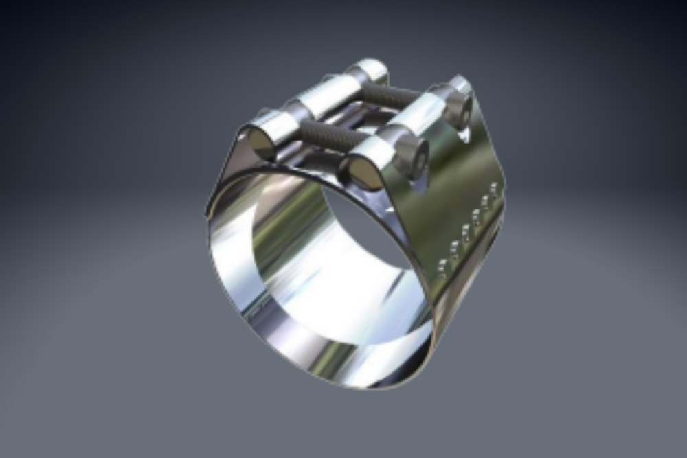 Stainless steel flex clamps designed to be used when clamping flexible pipe to straight pipe providing a gas tight connection.